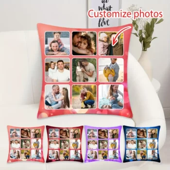 Μαξιλάρι μεγάλο ροζ με 9 φωτογραφίες