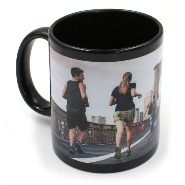 Μαύρη κούπα με λευκό ορθογώνιο .