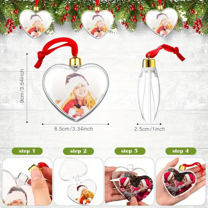 Η κόκκινη κορδέλα του επιτρέπει να κρεμαστεί εύκολα σε δέντρο, τοίχο ή οποιοδήποτε σημείο του χώρου σας. Το διαφανές σώμα μπορεί να ανοίξει, ώστε να τοποθετήσετε μέσα μικρά διακοσμητικά στοιχεία, φωτογραφίες, μηνύματα ή ευχές, δημιουργώντας έτσι ένα πραγματικά προσωπικό στολίδι ή δώρο.